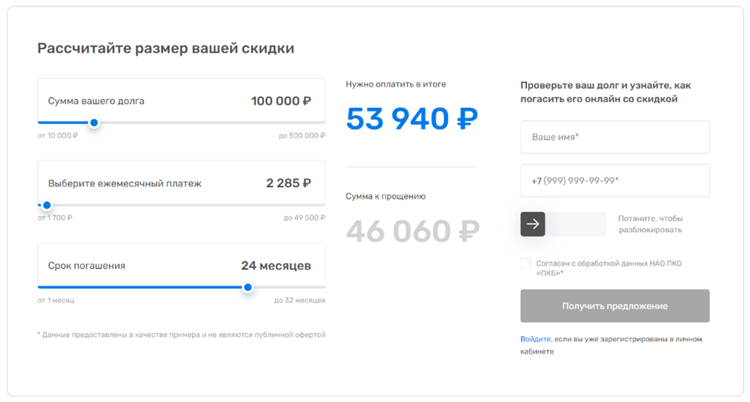 «ПКБ» как официальное агентство обязано соблюдать правила закона. Поскольку перечисленными мерами замотивировать должника погасить кредит сложно, бюро предлагает стимулирующие «плюшки»: